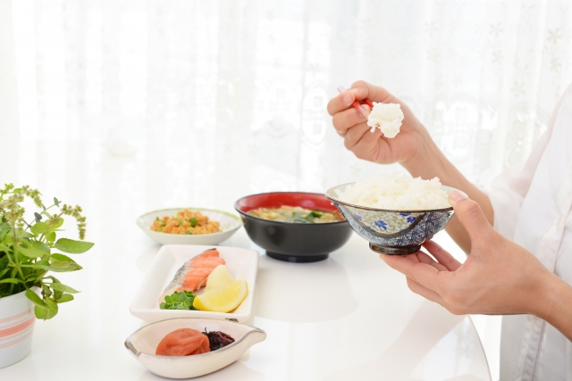 食事の際は、焦ってかきこむように食べたりせず、ゆっくりよく噛んで食べるようにしましょう。
