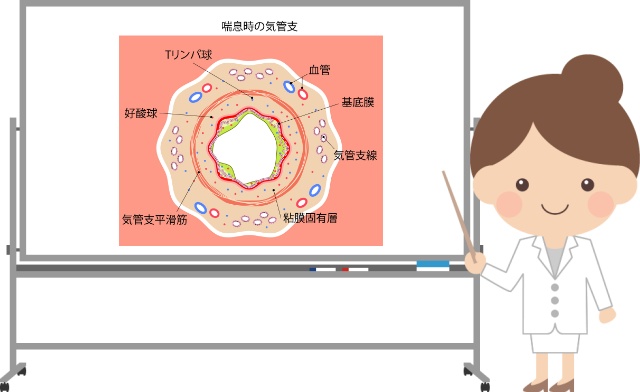 成人ぜんそくによる咳は気道の炎症や周囲の筋肉の収縮が原因
