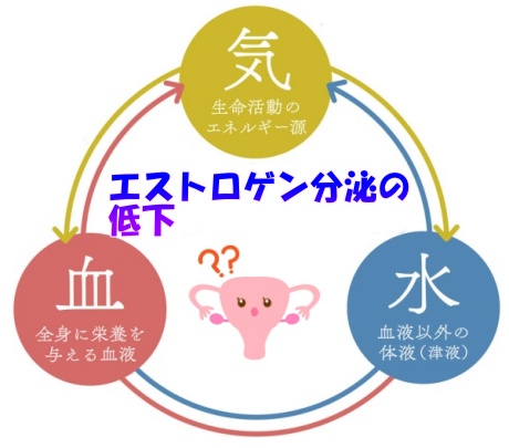 東洋医学では、閉経により生命活動の源となる生殖や泌尿器系の機能にかかわる「腎(じん)」の力が衰えることや、体内の余分な「水(水分)」と熱によって起こる炎症、「血(血液)」の滞りによる「血瘀(けつお)」などによっても隠部に痛みや違和感が生じると考えます。