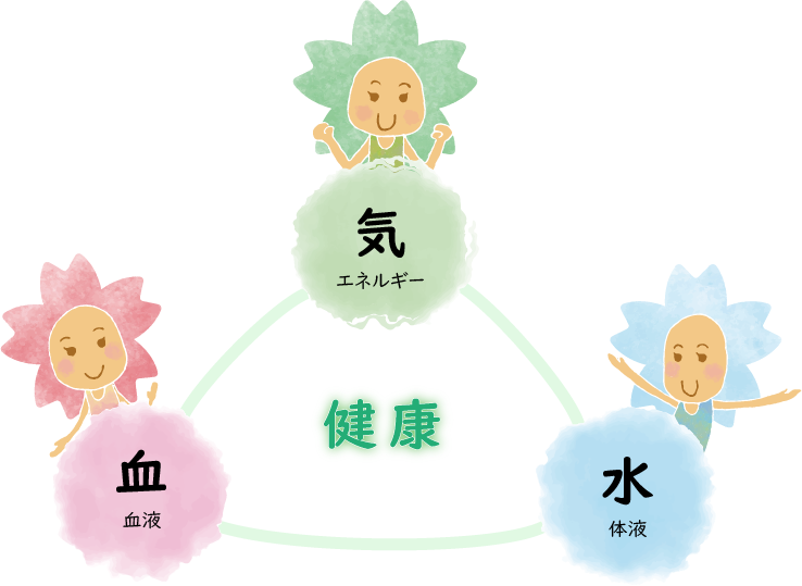 また、東洋医学では、「気・血・水(生命エネルギー・血液・水分)」の流れが滞ったり不足したりすることによって痛みが生じたりすると考えられています。
