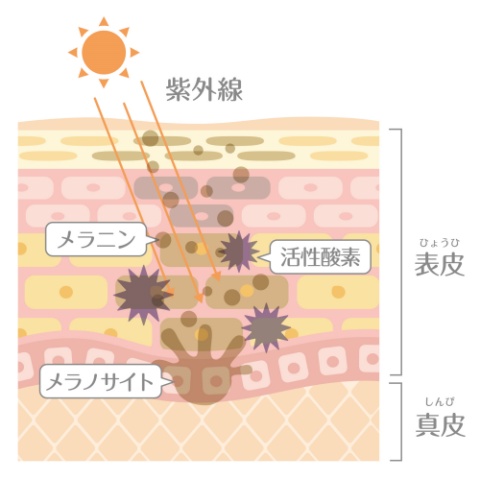 特に、紫外線を浴びることによるダメージは大きく、その炎症反応から乾燥や荒れによる皮むけはもちろん、皮膚の深層にあるメラノサイトが活性化されてくすみや色素沈着を引き起こしてしまうこともあるため、十分なケアが必要です。