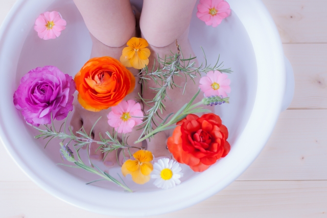就寝前にゆったりと湯船に浸かって体全体を温めることも有効ですが、足裏にはたくさんのツボがあるため、足を温めて刺激すれば、足湯だけでも全身を温めることができます。
